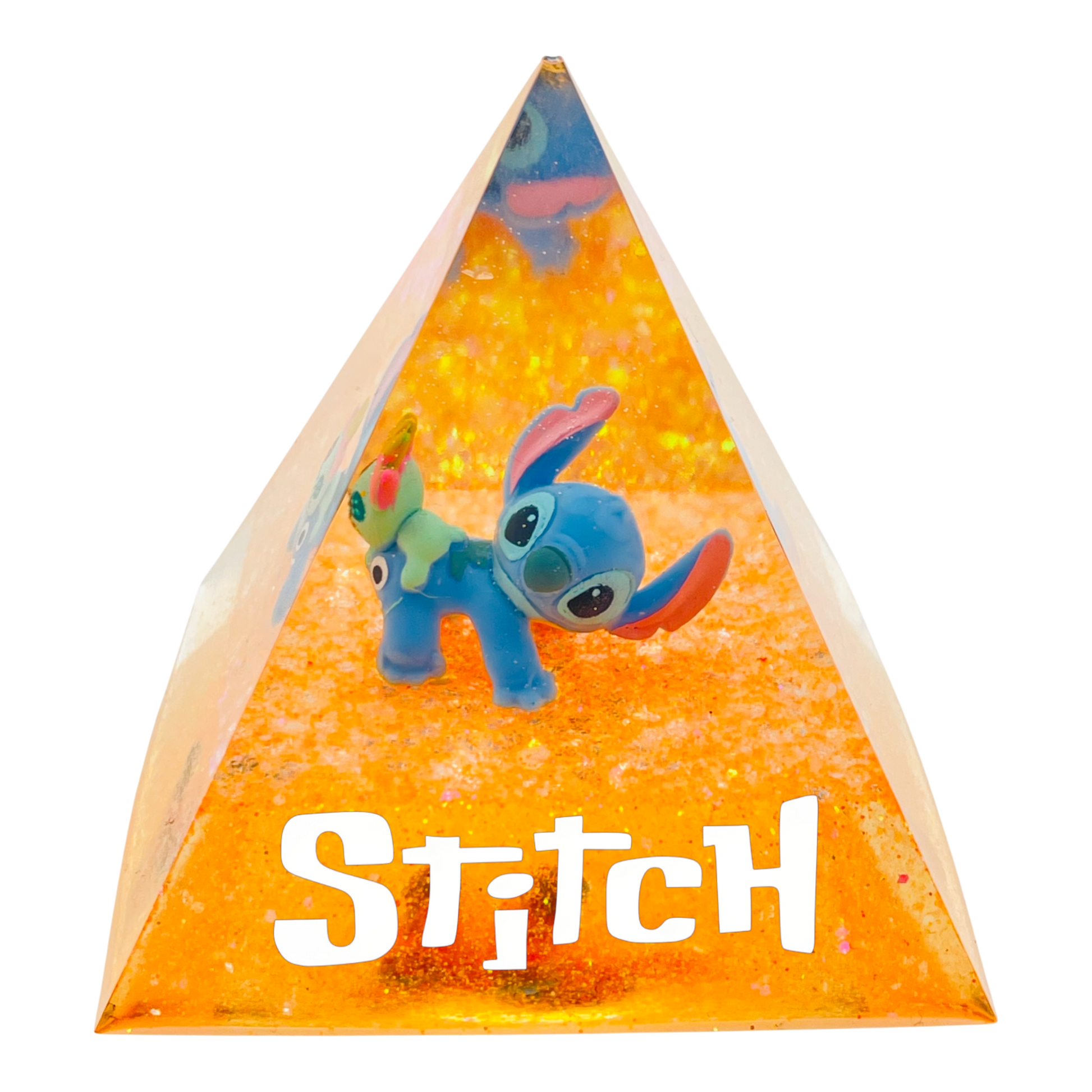 iramide Luminosa "Stitch & Scrump: Golden Hour" – Lampada LED in Resina Arancione Glitterata